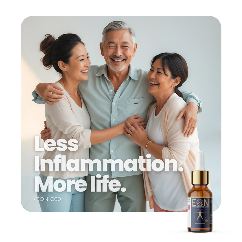 EON features our advanced water-soluble Carbon 60—a breakthrough molecule designed for exceptional absorption. Because the body is over 60% water, this unique format allows for significantly higher bioavailability compared to traditional oil-based alternatives.